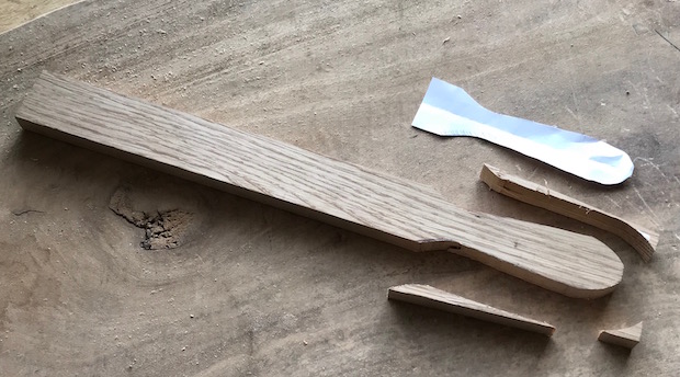 まずは木の棒の片側を握りやすい形に切り出してやすりがけ。「使えりゃいいよ」という実用重視派は、この作業は省いてもOK。