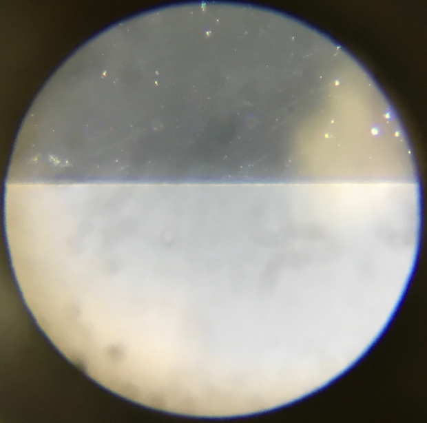再び刃先をクローズアップ! 組織の欠けは磨かれて滑らかに。刃先もきちんとそろっている(画面上側が刃)。