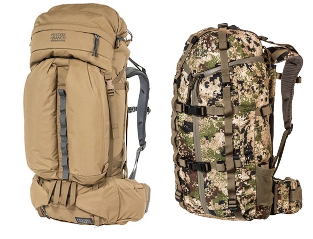 右)背面パネルとメインパックの間に獲物を挟んで、持ち運べるハンター用のバックパック「ピントラー」。左)デイナ・グリーソンが生み出したモデルのなかでもっとも人気のある大容量バックパック「テラプレーン」
