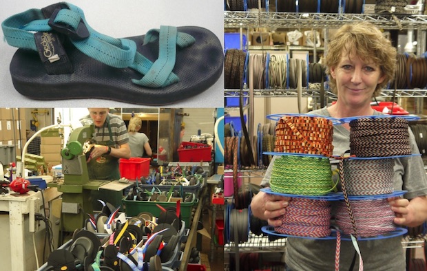 長く愛用してもらうことがチャコのミッション。アメリカの工場でソールの貼り直し、ウェビングの交換・修理を行なっている。