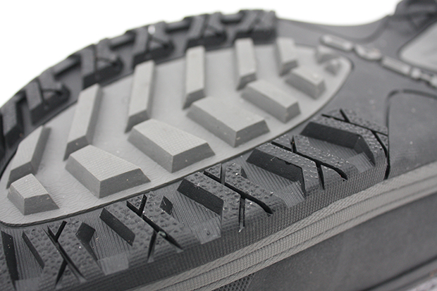ソールの形状ですが、スタッドレスタイヤに似たようなトレッドが付いています。実際に履いて雪道を歩いてみましたが、大体のところは安心して歩けました。