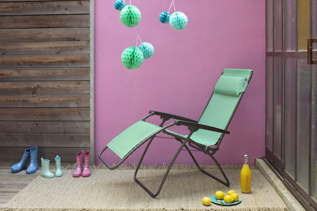 これぞ、リラックスのためにデザインされたチェア。カラー(左から):ベゴニア、シトラス、メンソール 全3色 サイズ:高さ81.5〜114×幅68×奥行き87〜163cm 重さ:6.6kg 価格:25000円+税