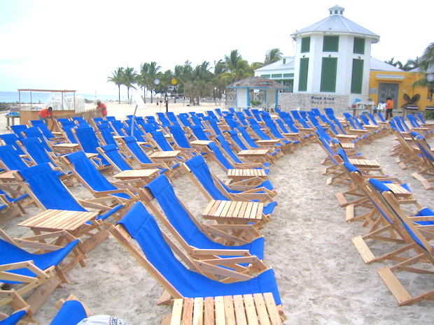 ソフトウェア会社・オラクルのホリデーパーティで採用された。グランバハマのプライベートビーチにずらりと並ぶチェアとサイドテーブル(いずれも日本未発売)。