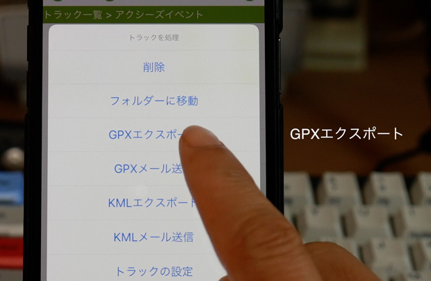 ただし、記録を再確認するにはスマホの画面だとやはり小さい。そんな時は簡単にパソコンにデータを送ることができる。画面左のメニューボタンをクリックしてファイル→トラック、送りたいファイルを選択し、左下のチェックマークからエクスポート形式を選ぶだけだ。ボクはMacOSを使っているのでGPXエクスポートでAirDropで移動し『TrailNote』というソフトで開いて、大画面で移動時間などを再度メモ書きしてまとめている。