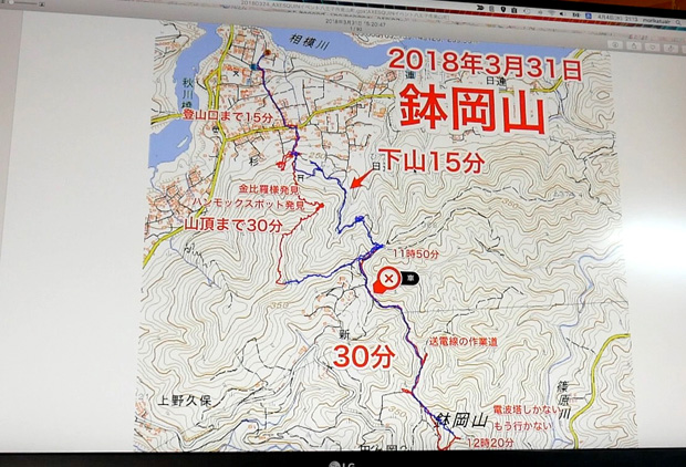 ボクの場合は、パソコンで国土地理院の地形図とグーグルアースの衛星写真を見比べて、さらにネットで公開されている環境省の植生図や明治や昭和の地形図を参考に、特徴的な場所や植生、大きく変わった場所を歩いて調査し、自分だけの地図を作って遊んでいる。今までは地形と方角で場所を割り出していたが、スマホの地図だと場所の特定からメモ書きまでも、すべてデジタルで簡単に行えてしまうのだ。