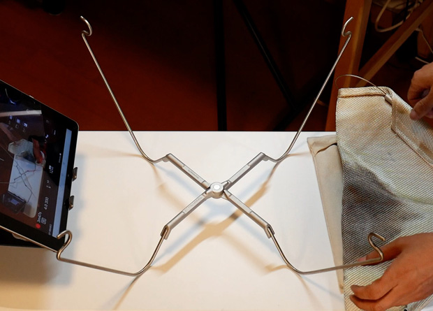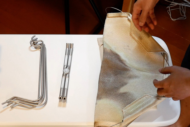 組み立ててみると、連結パーツに足パーツを差し込み、そこに耐熱クロスを引っ掛けるだけと単純だ。しかし連結パーツと足パーツが固定されないため、最初は手間取ってしまった。それ以外は簡単だ。収納も「袋が小さすぎないか?」と思っていたが、思ったよりも入れやすかった。