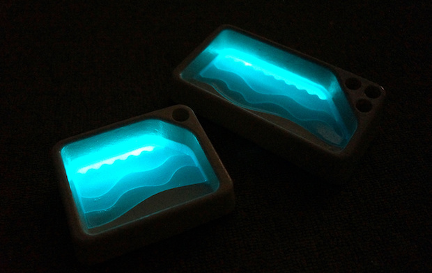 オフィスの灯りを消すと出現する夜のビーチ。蓄光樹脂が怪しくも美しい光で海底を照らし、一日の終りに心を優しくなだめてくれます。右はBeach A、左はBeach Bです