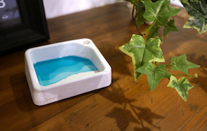 新しい文具トレイ「Beach」は小さな小さな砂浜と、そこによせてはかえす波とを表現しました。徐々に深みを増していく青い海の色は、リラクゼーション効果満点。遠い南の島のイメージを呼び起こし、忙しさに圧迫された心に、軽やかな安らぎをもたらしてくれます。