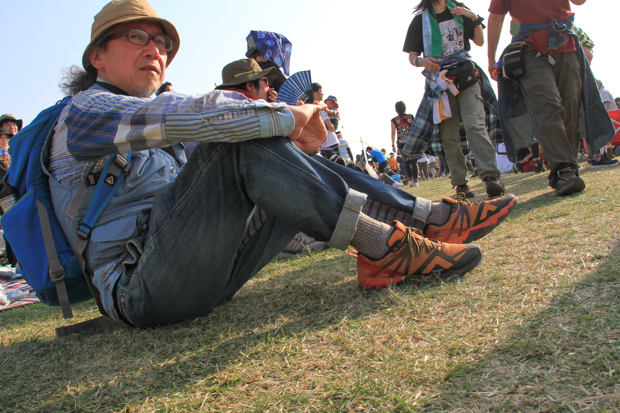 今回は雨が降らなかったこともあってローカットで正解。雨の予報が出ているフェスであれば、ミッドカットが安心だろう。フェスでは歩く。足元(シューズ)への心くばりがフェス必勝法