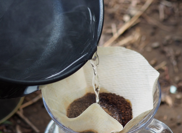なみなみとお湯を沸かすと注ぐことは厳しいが、コーヒーやカップラーメン用のお湯くらいなら垂れることなく注げる。湯沸かし鍋を別に持つ必要がなくなることは、荷物を少しでも減らしたいハイカーには大きなポイントだ。
