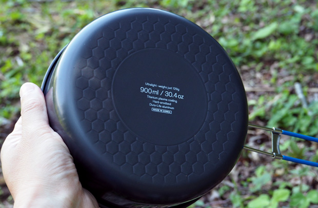 僕はいつも最初にコーヒー用の湯沸かしと同時に食材を湯煎する、その後、肉や餃子、チャーハンを炒めて山料理を作っている。使ってみた感想は、チタンのように軽く、熱伝導もチタンっぽい。といってもチタンに比べるとだいぶマシではあるが、アルミが薄すぎて強火だと一点に熱が集中してしまう感じがした。ただ薄い素材で軽くしたのではなく、実際に使用した上で弱点をカバーしようしたと見受ける裏のハニカム模様に、努力を感じた。