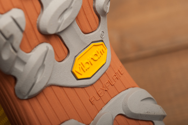 ラバー部分はヴィブラム社製。柔らかな泥から濡れた岩場まで、優れたグリップ力を発揮