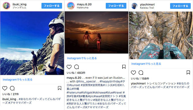 ウミガメとの楽しそうな画像や、「自然保護の父」ジョン・ミューアの名言をプリントしたオリジナルバギーズ、上級ルートで知られる北アルプスのジャンダルムでの画像など、どれもバギーズへの思いがひしひしと伝わってきます。本当にすばらしい作品ばかりで、編集部では選出に困難を極めました……。インスタグラムで「#アキママバギーズ」のハッシュタグを検索していただくと、今でも全ての応募作品をご覧いただけます。あなたならどの作品がいちばんですか?
