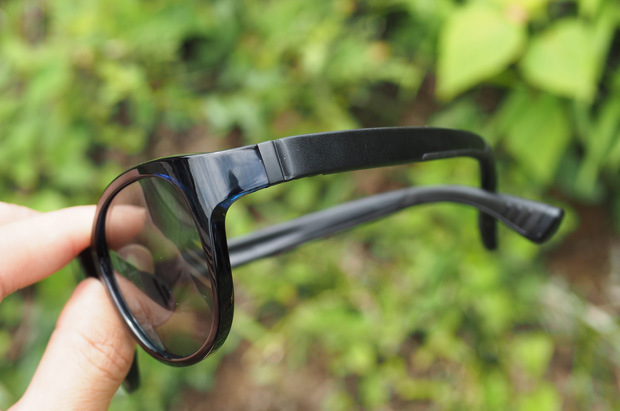 使いやすいデザインともうひとつ気に入ったのが、ヒンジ機構のない、特殊な樹脂の弾力だけを使用したテンプル構造だ。とても軽量で圧迫がなく程よいホールド感があり、ズレない。この弾力を使いネックホールドさせている。一つ問題があるとすると小さく折りたたむことはできず、収納スペースは若干大きい。テンプルは簡単に取り外せるので移動時は分解しても良いかもしれない。またテンプルだけで販売しているため、気軽にテンプルカラーを変えて楽しむことができる。