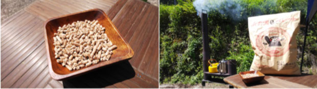 さてみなさん、ペレットはご存知だろうか? ペレットとは木質ペレットのことで、木を粉砕し、乾燥・圧縮した燃料のことだ。材料は、樹木を伐採したときにでる細かい木や、製材くずなど。使い道がなくなった木が、ペレットとして生まれ変われるという。形は1cmほどの粒状で軽く、さながら、コーヒービーンズのよう。薪ほどかさばらないので、持ち運びやすいのも特徴だ。私は今回初めて知ったのだが、ストーブ業界のなかでは、認知度があがってきている。