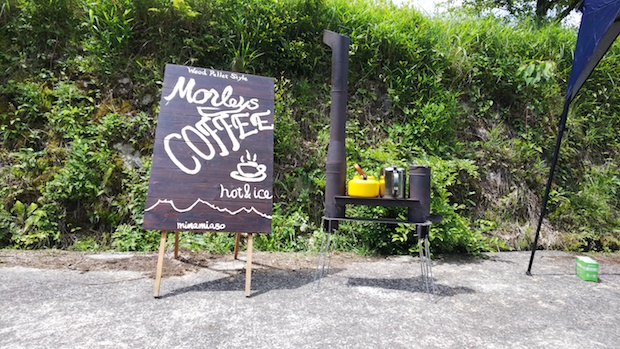 「Morley’s COFFEE」は週末だけ、南阿蘇久木野教育キャンプ場の一画にオープンするコーヒー屋さん。そこで使われていたこのアウトドア用グリルヒーター「KIRINSAN」。なんといったって、本格的に木を扱う林業の人が使っているってすごいでしょ、って思ってしまう。
