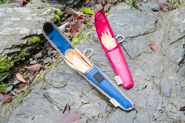 竹で作られたトゥーゴーウェアのカトラリーセット(左¥2,160 右¥1,728)。左の大人用には、アメリカの会社にもかかわらず、箸もラインナップされているところがポイント。