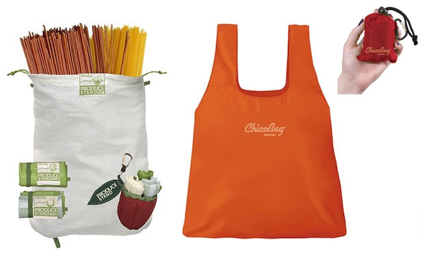 アメリカのスーパーでは、果物や野菜だけではなく、パスタやナッツなども量り売りしている店が少なくない。左は店から家での保存袋として使えるバッグ。右はリサイクルされたポリエステルを使ったオリジナル(¥864)。