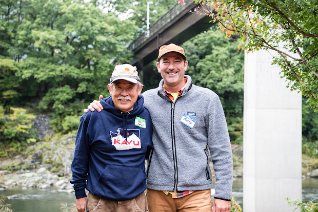 昨年秋に埼玉県・長瀞で行なわれたKAMP KAVUでのツーショット。ベイリーは赤津会長のことを“He is my second father.”と話していた。ただのビジネスパートナーではない、人と人とのぬくもりのある関係が、アウトドアの小さな業界にはまだ残っている。