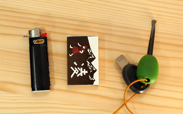 火付け道具3つとは、ガスメインのハイカーの場合は、①ガス器具の自動点火器(イグナイター)、②ライター、③マッチの3つが多いと思う。山の中でトラブルにあい、意外と③まで進んでしまったりする例は多く、ボクの周りでも自動点火器が壊れ、ライターを使うが、作った料理をライターに倒してしまったという例や、ライターのガスが抜けていたり、劣化して点かなかったという例も聞いたことがある。マッチの場合は湿気に弱く本数制限があるため、昔から水濡れに強く、環境に影響されずに何千回も火花が飛ぶメタルマッチが重宝されてきた。ボクの場合は①ライター、②マッチ、③メタルマッチの3つを持って行っている。