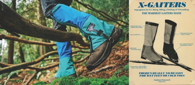 (左)ORの名を知らしめた傑作・Xゲイター。ブーツにフィットし、雪の侵入を許さない。(右)発売当時のXゲイター。