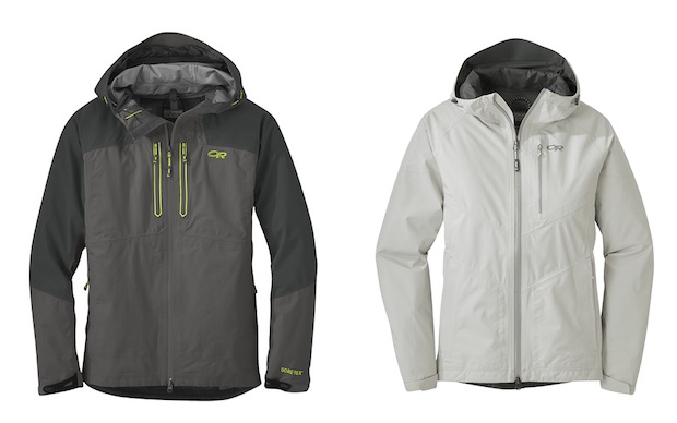 (左)メンズ フーリオジャケット。GORE-TEX C-KNITやGORE-TEX Pacliteを使い分けて使用した、しなやかで強靱なアウターシェル。¥44,000+税。(右)ウィメンズ アスパイアジャケット。防水透湿性に優れた、軽量な女性用アウターシェル。秋冬のトレッキングに最適。¥29,000+税。