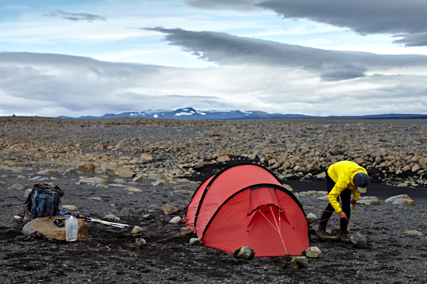 2013年、北極圏の孤島アイスランドを北海岸から南海岸へ1か月かけて歩いて縦断。寝床は2人用の非自立テント、ヒルバーグのナロ2GT。トンネル構造で風に強く、前室が広いモデルだ。