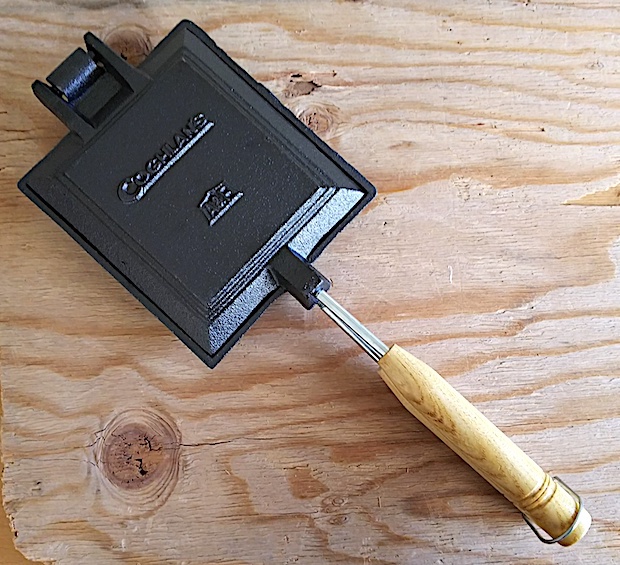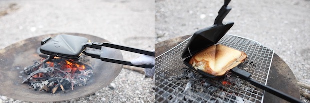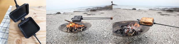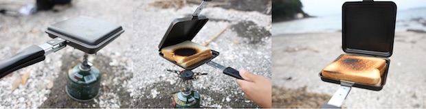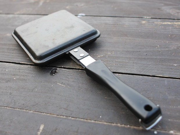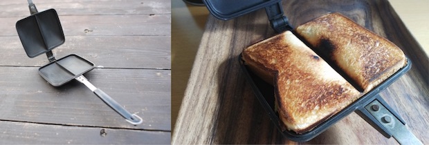 南部鉄器は日本が誇るすばらしい技術のひとつ。かなり重さがあり重厚なつくり、取っ手部分も鉄でできているので、分厚いパンでもしっかりプレスできます。重いのでずっと持ち続けているのは正直しんどいかな。焚き火台に網のせて、その上に置くといいかも。直火オッケーの最たる一品で焚き火にも炭火でもガンガンいけるつくりです。キャンプでワイルドに魅せたい人にオススメです。ただ、ダッチオーブンなどといっしょではじめに油をなじませたり、洗剤で洗ってはいけなかったりとお手入れが必要です。お値段は6,000円とちょっと悩む金額。でも、メンズはこういう面倒くさいのが好きなんでしょうねー。