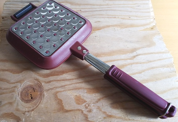 魔法のフライパンで有名なメーカーがつくっているホットサンドベーカー。形もラウンドしていて、パンも大きな具もつめやすい。フライパン屋さんの技術を盛り込んでいるので火の通り加減がいい。重量も軽すぎず、重すぎずちょうどいい。フッ素加工なのでお手入れもしやすく、ヒンジもやりやすいです。母から借りたので、金額は聞いていなかったのですが、えー結構高い! すみません大切に扱います。これ、イチオシです。