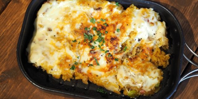 貸してあげるよと言ってくれる友だちのなかで、これがいちばん被っていました。ってことは、これはいちばんの人気商品なのか!? 名前もよく聞くバウルーさん。ダブルとシングルの2種類があるのですが、今回はダブルを試させていただきました。真ん中で切れ込みはあるのですが、切れるほどではないです。重さもちょうどよく、火の通りもいいです。熱伝導もいいので、シングルバーナーの一点集中でも全体に焦げ目がつきます。ただ、ヒンジの部分は外れません。
