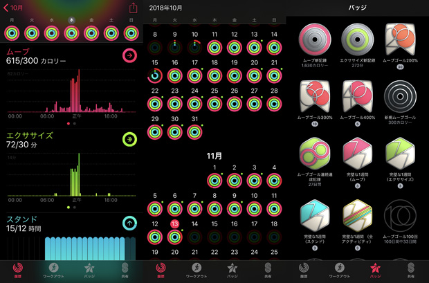 買ってみるまで理解できなかった3色サークルだ。3日も付けていると3つのサークルを埋めるのが楽しくなってきた。