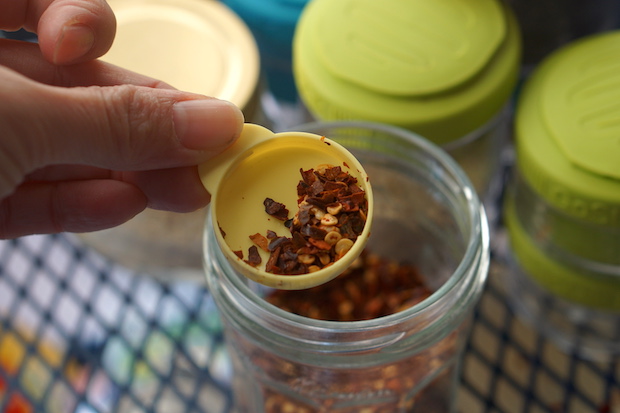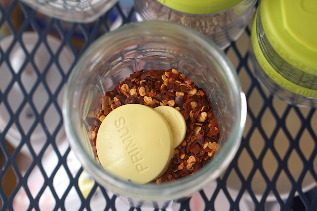 そう、ガスカートリッジのフタは、柄が長いスプーンが入らないような小瓶に入れておける便利な小型スプーンになります。すりゴマや顆粒だしといった粉末状のものをごく少量をすくり取りたいとき非常に使い勝手がいいんですよね。まるでスプーンとして使ってくださいと言わんばかりにこんなふうに取っ手がついてるし。