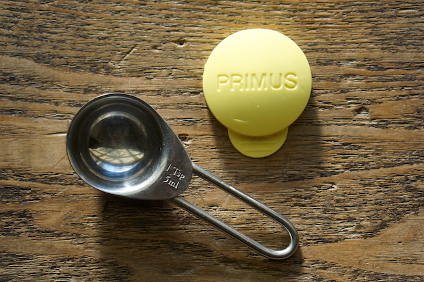 しかも! ここが結構「言いたくなるポイント」なんですが、フタの容量を計ってみると約5mlなんです。ブランドによってわずかに差はありますが、これは小さじ1と同じ容量。もしキャンプで料理中に「小さじが欲しい!」と騒いでいる人がいたら、「これだいたい容量一緒だよ」ってフタを差し出してみてください。ドヤ顔じゃなくて、「え?知らなかったんだ」的な涼しい顔でぜひ。
