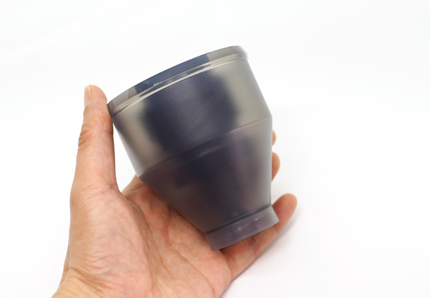 別売りの同社インフィニティバックパッカーマグにジャストフィットする設計。隙間にコーヒー豆をパッキングすれば、カップを持つだけでコーヒーセットが完結する。スタッキングマニアにも気持ちの良いドリッパーだ。しかも、このカップはキャップ部分がゴムパッキンで完全密封できるため、湿ったカップ・ドリッパー・コーヒー豆の後始末を考えなくてよいのは登山ではうれしい設計だ。