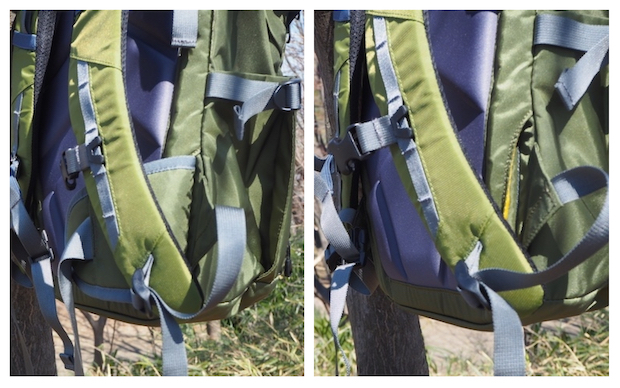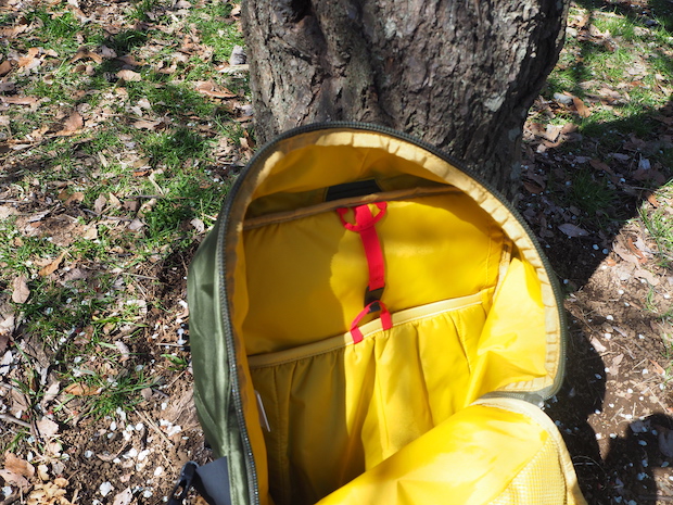 タウンとアウトドアの違ったシーンで活躍するための特徴は、ウェストパッドが背面に収容でき、チェストベルトが取り外し可能なこと。アウトドアではウェストパッドとチェストベルトを使ってしっかりホールドし、都市ではシンプルなデザインのバックパックとして「見せる」ことができる。フロント上部には、荷物の整理整頓がしやすいオーガナイザーポケットがあり、スマートフォンやカード、ペン、行動食や地図などのハイクアイテムまで小物類をすっきり収納することができる。