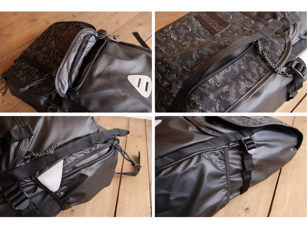 さらにさらに、このメインコンパートメントを開けずともアクセス可能なポケットが、フラップ部分とフロント部分にも。バックパックの側部にはドリンクホルダーも備えるなど、かゆいところに手が届く作りとなっています。