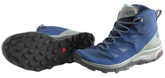 重過ぎない荷物で長い距離を歩くのに適したモデルで、足入れ感覚は守られ感が強く、深めのアッパーとミッドソールが足裏全体を包み込むかのようである。アウトソールはサロモン独自開発のコンタグリップ。泥も岩もしっかりと掴み取ってくれるパターンを刻み、安心感も高い。