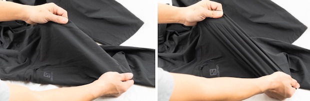 伸縮率がいいということは、もちろん履き心地がいいということ。4WAYストレッチとはいうものの、実際に履いてみた感覚からいえば、ほぼあらゆる方向への伸び縮みができる。手で左右に引っ張ってみても、こんなに伸びてしまって大丈夫なのかというほどに伸びる。もちろん伸び切ることもなく、元通りには戻るわけで。これなら、例えばクライミング用のパンツとしてもまったく不快感なく使えるだろう。足上げ時の引き攣りなどとは無縁だ。