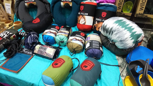 こんなにハンモックを推してきたが、じつは私が気になった商品はこれではなかった。こちらのブランドがリリースしている、スリーピングピローだ。そう枕! 仕事柄、テント泊、寝袋で寝る日が年数日あるのだが、枕は大事だといつも思う。むかしは着替えやタオルを頭のところにおいていた。携帯性を考えて小さめのクッションなどを持って行ったりもしていたが、これもまた居心地がよくない。