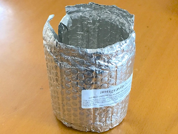 そのうちに、お湯で戻すと戻りが良いことに気がついた。しかし、戻すためだけにストーブを長時間使うのは惜しい……。そこで思い出したのが「アンチグラビティギア」のコジー 。クッカーにかぶせて保温し、フリーズドライ食品などを効果的に戻すための道具だ。