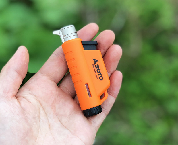 離れた場所から安全に点火したいのならスライドガストーチの方が優れているが、やはり少し大きかった。この『コンパクト』ならキーホルダーに付けたり、ネックストラップで首から吊るしても違和感ない大きさだ。クッカーの隙間に収納することも可能だ。ハイカーとしては登山でも気軽に持っていける大きさになったのは嬉しい。
