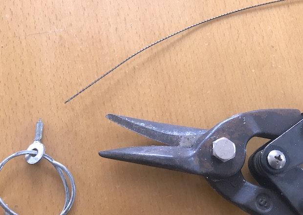 まずは金切り鋏で片側のハンドルすれすれの部分でバツンと切り落とす。鋸としては使えなくなるが臆することはない。これによって新しい力が704に付与される。