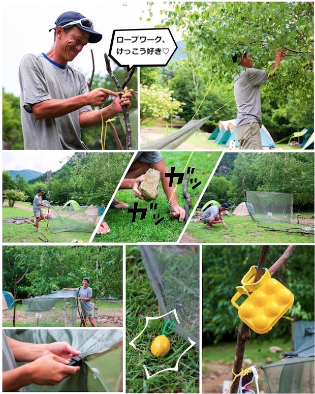 ■クローズライン 「今回のギア争奪戦でかなり大切だなと思っていたのは、ロープです」。ヒモがあれば、アウトドアでは冒険の幅が大きくなります!