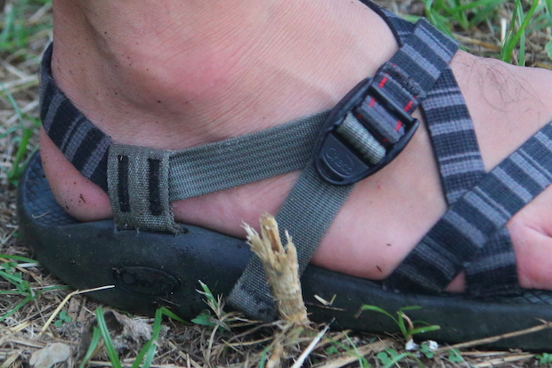 野山をサンダルで歩いたとき、問題となるのは刈り株だ。地面から数cm上で切られたススキなどの茎は、ガラス質の繊維も相まって鋭い。ビーサンで昆虫採集に勤しんだ元少年なら、ソールからはみ出した足肉を刈り株でざっくり切ったことがあるだろう。