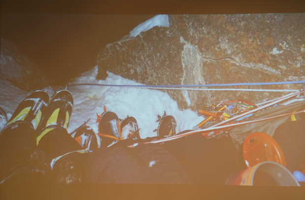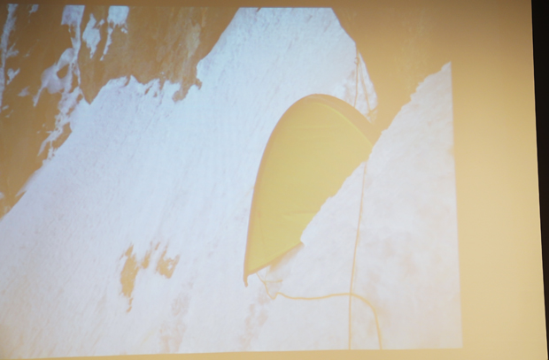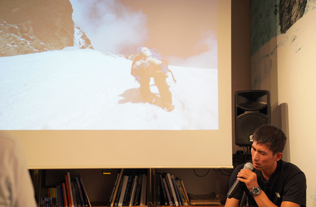 冒頭に馬目さんが「アルパインクライミングは、スポーツではなく冒険だと思う」と説明をしてから始まったスライドトークショー。佐藤さんのお話は、馬目さんのその言葉を裏付けるように過酷なものでした。
