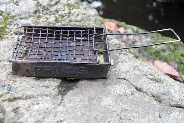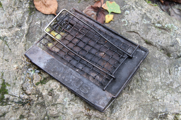 プリムスのフォールディングトースター。新品であれば、ステンレスの銀色にうつくしく輝いているはずなのですが……。なかなかでしょ、この使い込み具合。