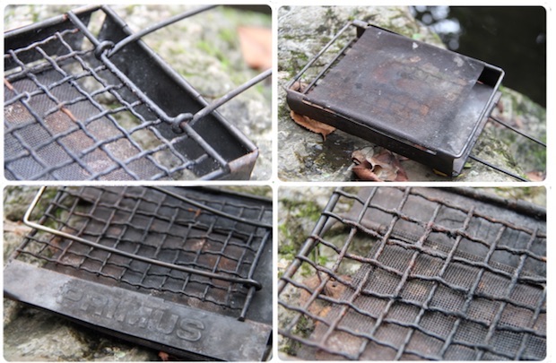 肉でも魚でも野菜でもなんでも焼いてきたが、トースターとして焼くだけがこいつの役割ではない。焚き火であれば、火のついた薪の上に置くだけで立派なストーブとしても使えるのだ。置き場所を調整するだけで、火加減だって自由自在。その状態で、網の上にシェラカップを置けば湯を沸かすこともできるし、チーズを溶かすことだってできる。その気になれば、コッヘルで鍋をつつくことだって。はたまた、熱いフライパンを置くための鍋敷きとしても役に立つ。焼く煮る揚げる置く。想像力を膨らませていけば、さまざまな調理にも対応できるはず。