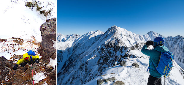 もちろん冬もいっしょ。八ヶ岳の中山尾根(左)も、西穂高岳登山(右)もベースキャンプを張っての山行だった。