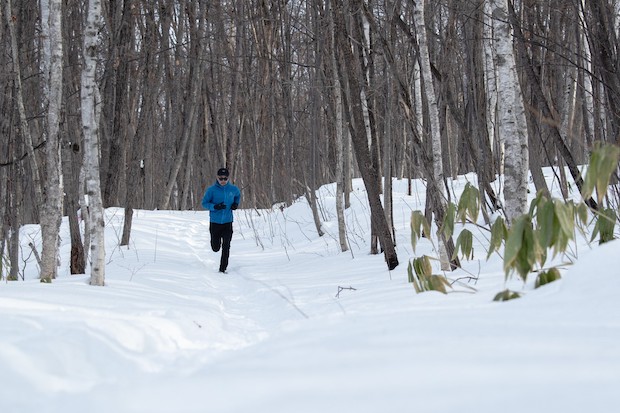 発汗量の多いスノートレイルラン。防風しながらも汗はしっかりと抜ける。