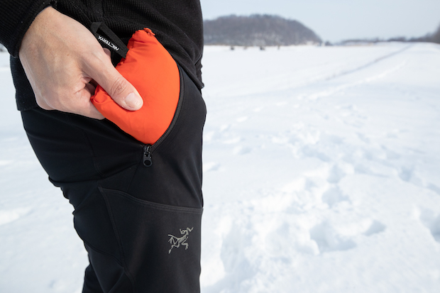 さらに、氷点下という環境で、大量発汗というシチュエーションではより顕著だろう。スコーミッシュフーディの透湿性能は汗が透過するスピードが速いため、凍りにくくウェア内をドライに保てるのだ。